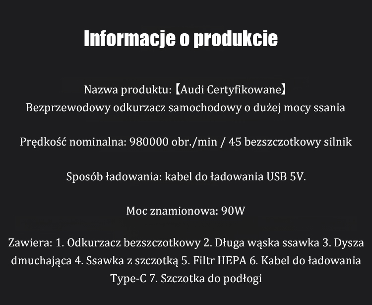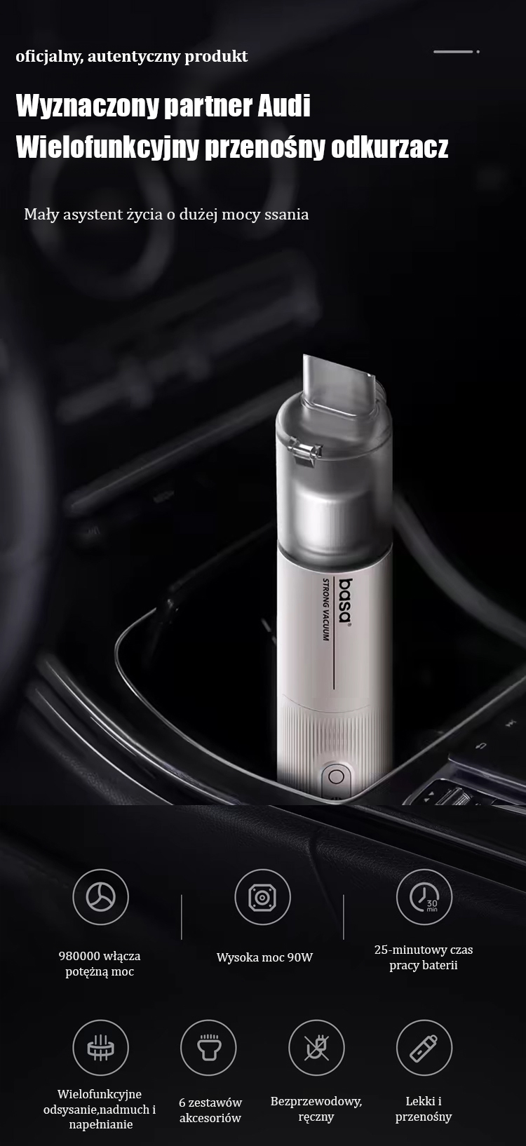 【Audi Certyfikowane】Bezprzewodowy odkurzacz samochodowy o dużej mocy ssania