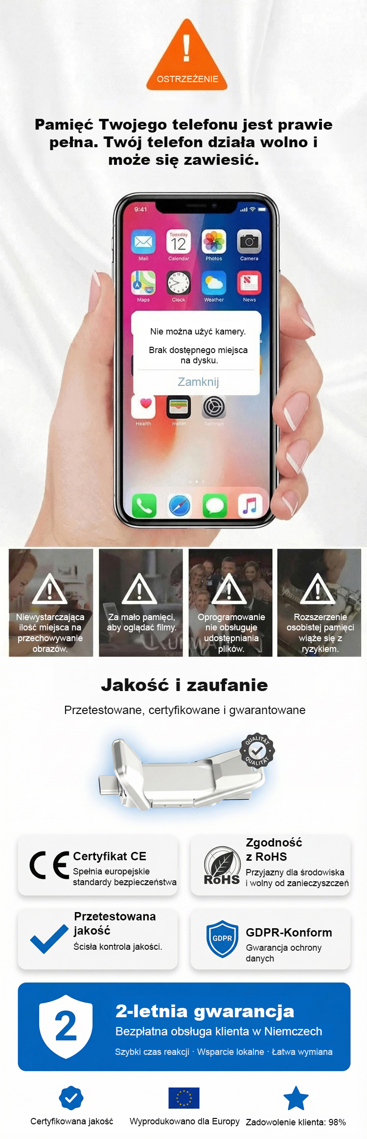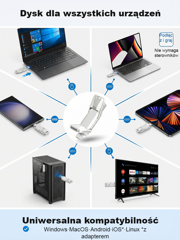 Dwuzłączowy przenośny dysk SSD USB, kompatybilny z telefonami i komputerami